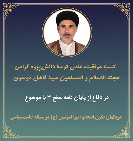 از پایاننامه سطح ۳ (کارشناسی ارشد) در رشته کلام اسلامی را تبریک عرض مینماید.