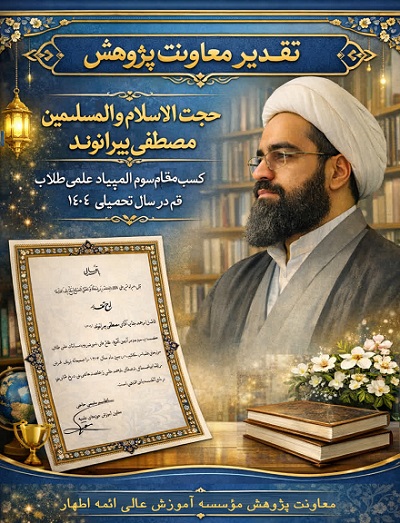 این دستاورد علمی، که حاصل تلاش مستمر، پشتکار پژوهشی و اهتمام جدی ایشان در مسیر علم‌آموزی و پژوهش است، مایه‌ی مباهات مجموعه علمی حوزه‌های علمیه و به‌ویژه مؤسسه آموزش عالی ائمه اطهار علیهم‌السلام می‌باشد.